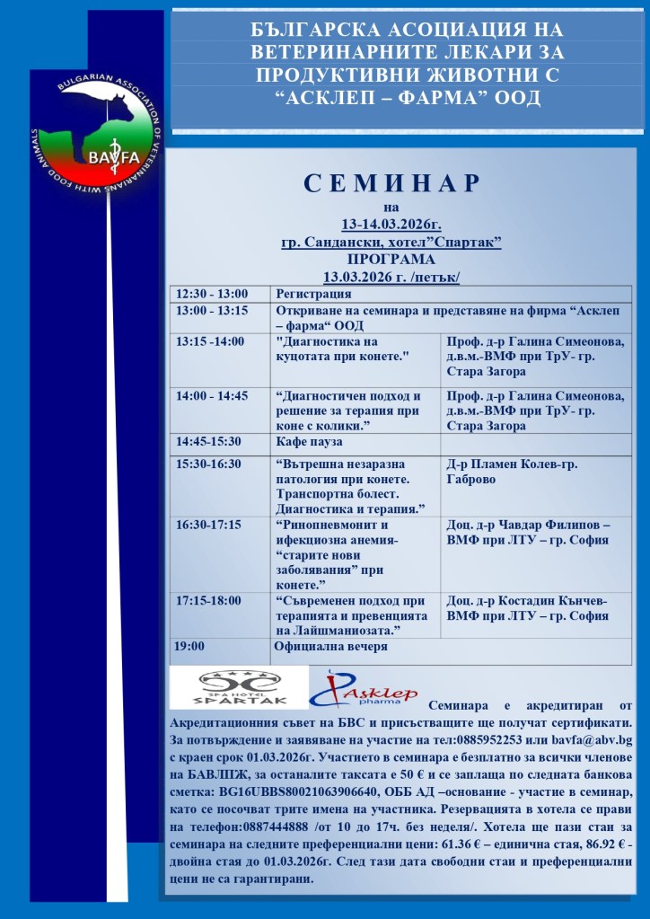 Скъпи колеги, Управителният съвет на Българска асоциация на ветеринарните лекари за продуктивни животни има удоволствието да Ви поздрави по повод нашият професионален празник и да Ви пожелае крепко здраве, професионални успехи и вяра в силата и хуманността на нашата професия! Въпреки тежките ситуации, в която изпадаме понякога, те ни учат и ни дават сили и увереност в нашите способности и професионализъм. Желаем Ви хубави и топли Коледни и новогодишни празници на Вас и вашите семейства!
